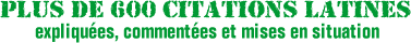 La prose française est souvent émaillée de CITATIONS LATINES, désespoir de ceux qui n'ont pas été initiés aux mystères de la langue de Cicéron. Fruit d'un parcours de tous les sentiers battus par les écrivains français, les citations et locutions rassemblées sur ce site sont traduites, classées, commentées, expliquées ; à la suite de chaque commentaire, les phrases françaises d'auteurs célèbres ayant employé l'expression analysée sont également fournies, vous permettant d'en saisir pleinement le sens. Sont réunies ici, non pas toutes les citations latines, mais au moins celles qui se rencontrent le plus fréquemment et que nous avons extraites d'un ouvrage paru pour la première fois en 1894. Pour les moins usitées, seules la traduction et la définition sont mentionnées. |